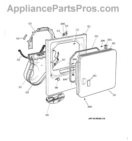 Parts for Ge BWXR473ET5WW: 02 - Front Panel & Door Parts
