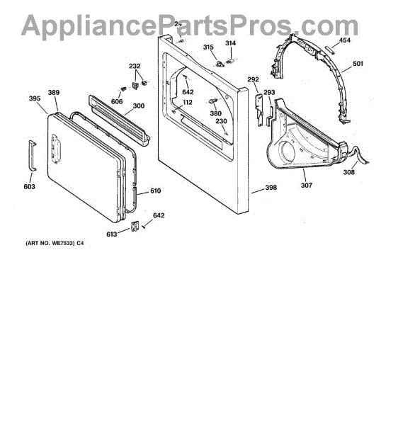 Causes of a bad front drum support bearing glide can include normal wear and tear over time, excessive load weights, or debris accumulation that can cause friction and damage. When the glide wears out, it can lead to increased noise levels and potential damage to other dryer components.