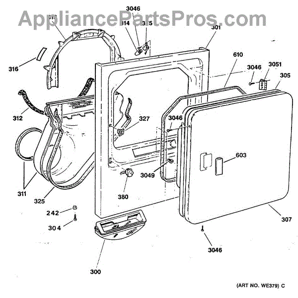 The Handle Door is an OEM part for GE dryers. This door handle allows for easy opening and closing of the dryer door, providing a secure grip to access the drum.