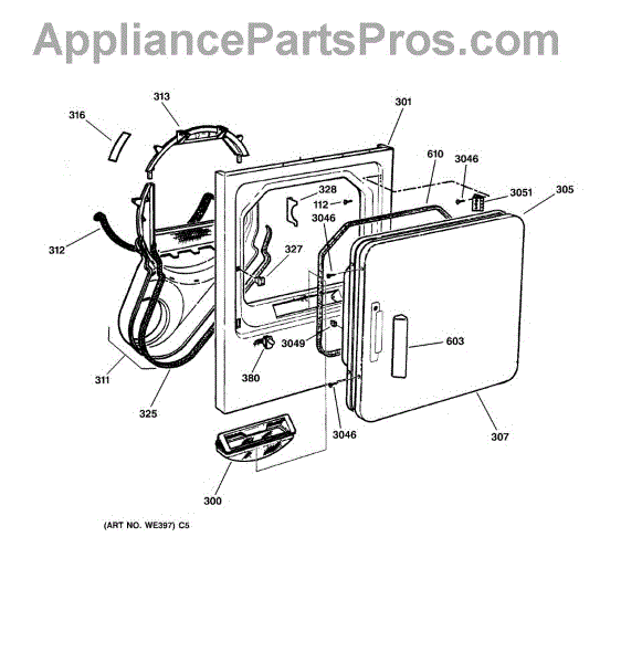 The Handle Door is an OEM part for GE dryers. This door handle allows for easy opening and closing of the dryer door, providing a secure grip to access the drum.