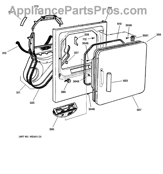 The Handle Door is an OEM part for GE dryers. This door handle allows for easy opening and closing of the dryer door, providing a secure grip to access the drum.