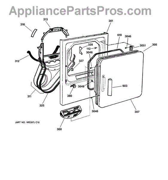 The Handle Door is an OEM part for GE dryers. This door handle allows for easy opening and closing of the dryer door, providing a secure grip to access the drum.