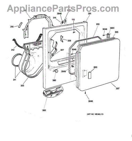 The Handle Door is an OEM part for GE dryers. This door handle allows for easy opening and closing of the dryer door, providing a secure grip to access the drum.