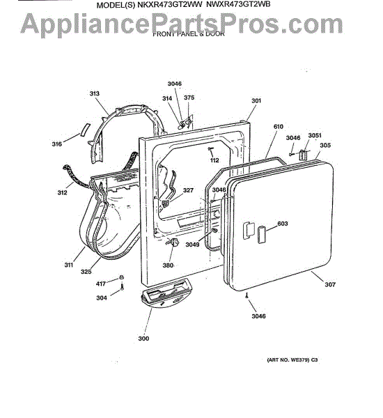 Parts for Ge NWXR473GT2WB: 02 - Front Panel & Door Parts