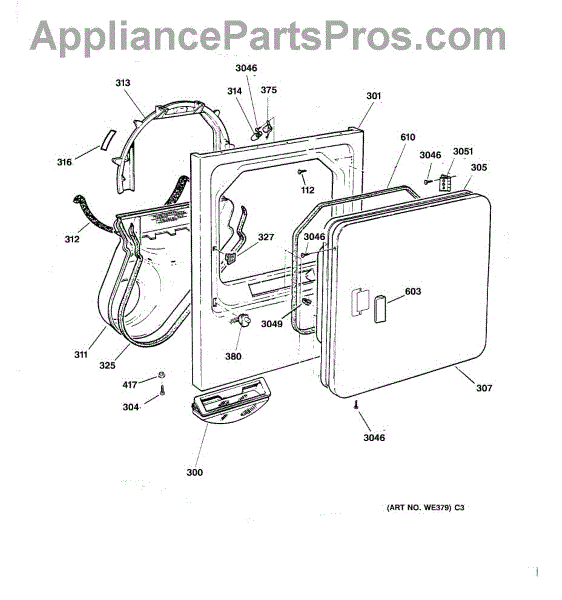 The Handle Door is an OEM part for GE dryers. This door handle allows for easy opening and closing of the dryer door, providing a secure grip to access the drum.
