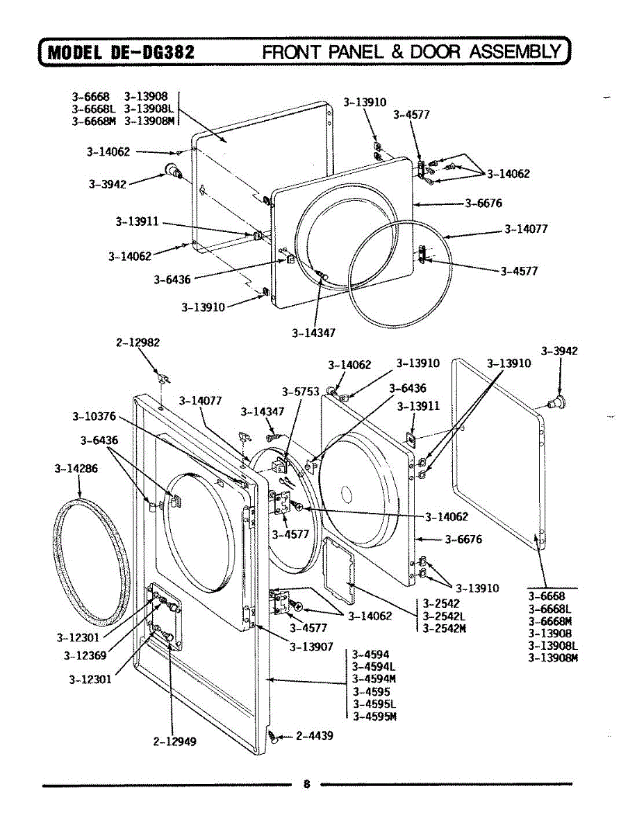 Parts for Maytag LDG382: 02 - Front Panel & Door Assembly Parts