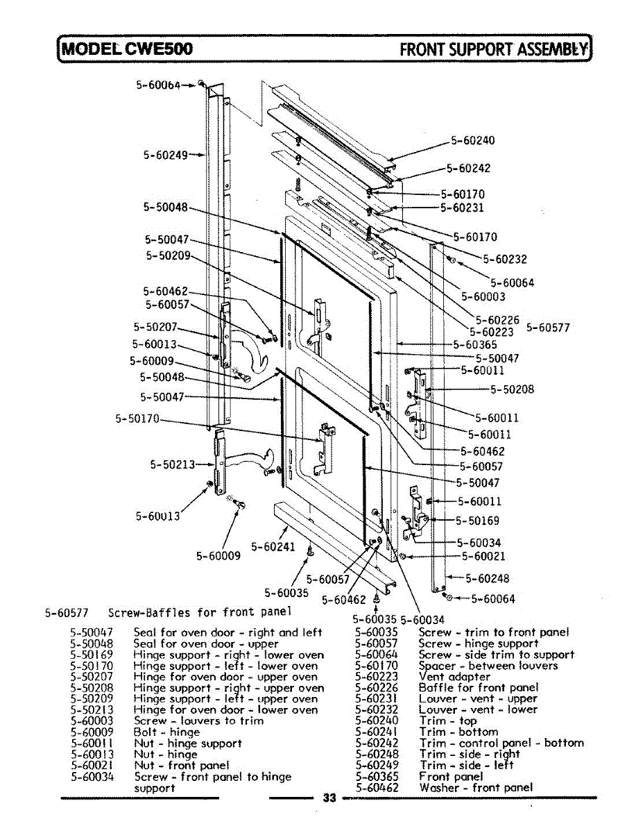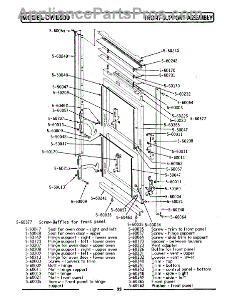 Horizontal oven door seal for top and bottom edges. Replace when worn to restore even heating and efficient baking. Hooks into slots on door frame.