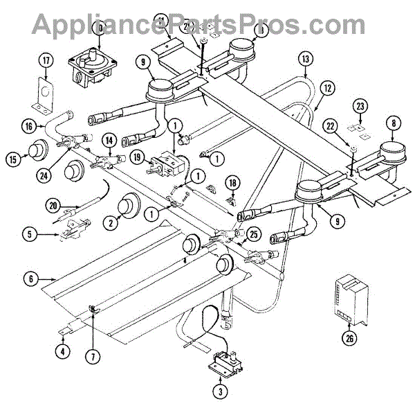 This factory screw secures appliance components to their mounting points. Replace missing, worn, or stripped hardware to restore a tight fit, proper alignment, and quieter operation across the affected assembly.