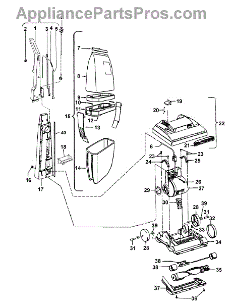 Parts for Hoover C1415---: 02 - Handle, Mainbody, Outerbag, Hood Parts