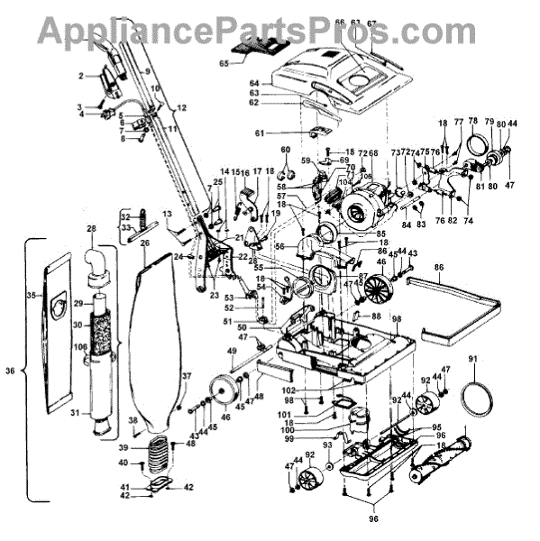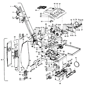 Parts for Hoover U4347---: 02 - Handle, Mainbody, Outerbag, Hood Parts