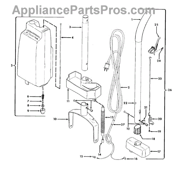 Parts for Hoover F4255040: 02 - Handle, Tank, Switch Parts