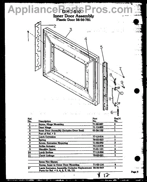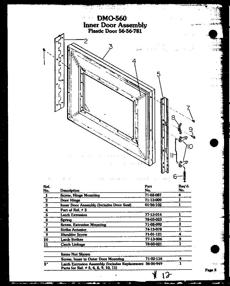 Parts for Amana DMO-560: 02 - Inner Door Assy Parts