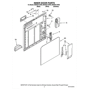 Parts for Maytag MDB4621AWB0: 02 - Inner Door Parts