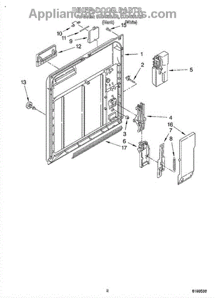 Parts for Whirlpool CUD4000JB0: 02 - Inner Door Parts