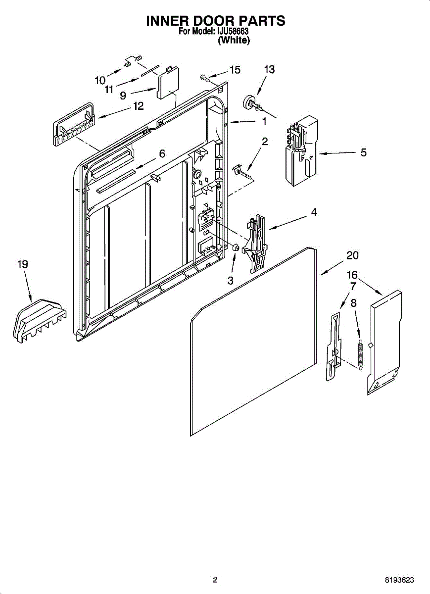 Parts for Whirlpool IJU58663: 02 - Inner Door Parts