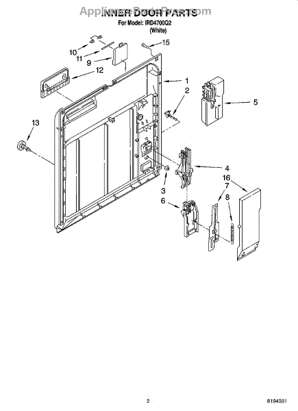 Parts for Whirlpool IRD4700Q2: 02 - Inner Door Parts