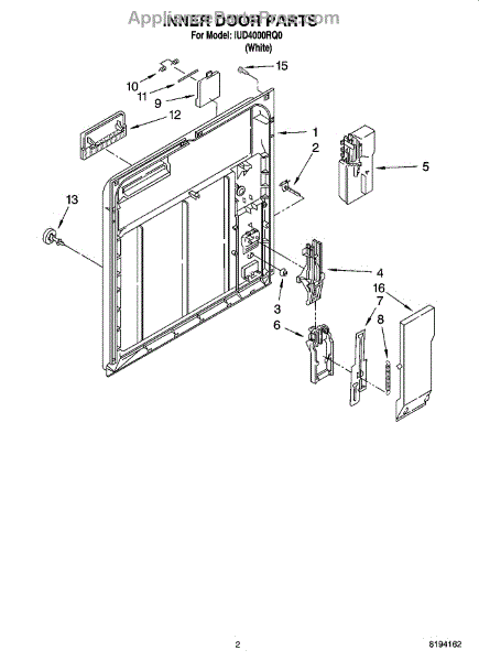 Parts for Whirlpool IUD4000RQ0: 02 - Inner Door Parts