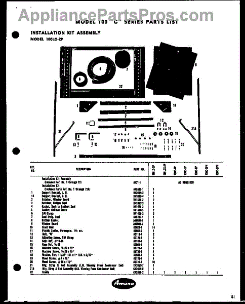 Parts for Amana 100C-3P: 02 - Installation Kit Assy Parts