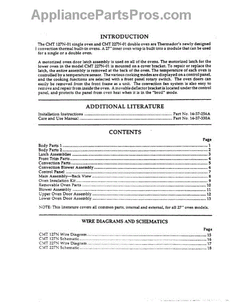 Parts for Thermador CMT127N-01: 02 - Introduction, Additional Literature Parts