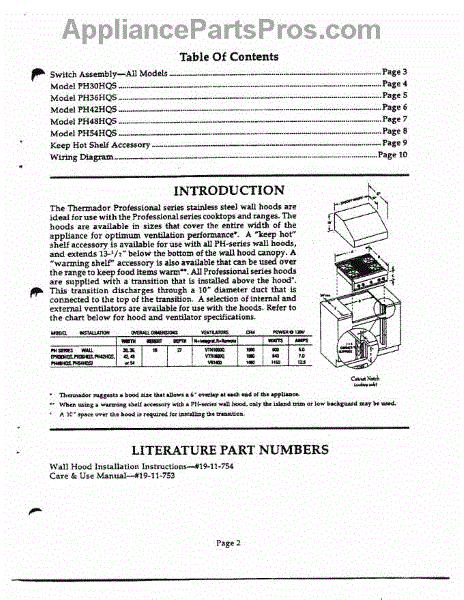 Parts for Thermador PH42HQS: 02 - Introduction & Literature Parts