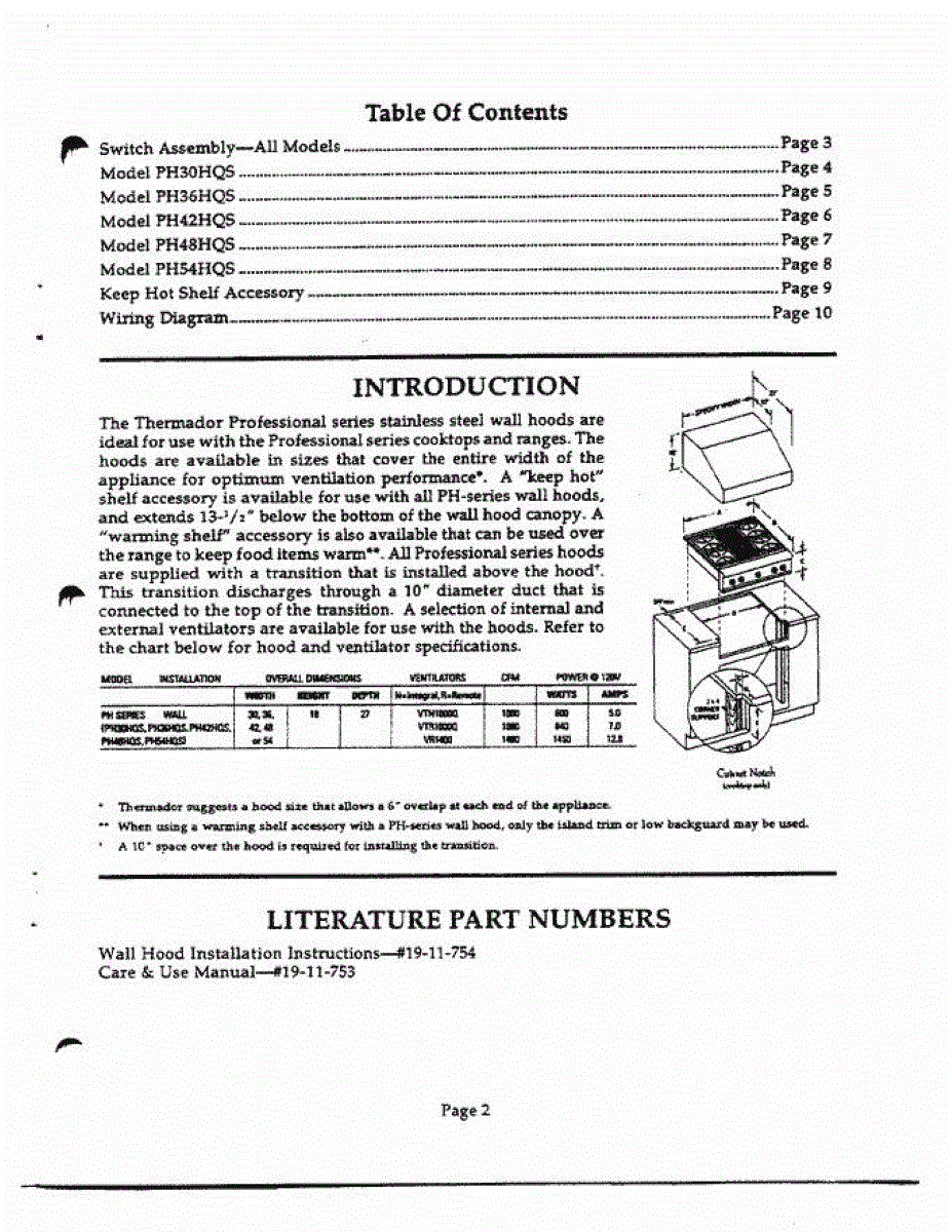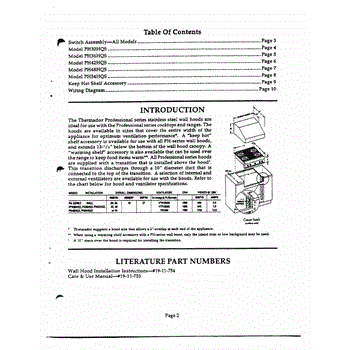 Parts for Thermador PH54HQS: 02 - Introduction & Literature Parts
