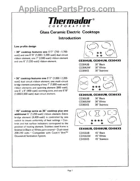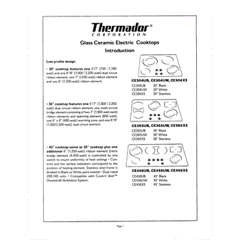 Parts for Thermador CE304UW: 02 - Introduction Parts