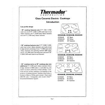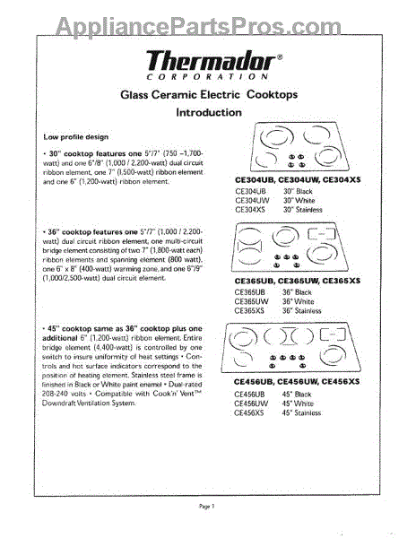 Parts for Thermador CE365XS: 02 - Introduction Parts