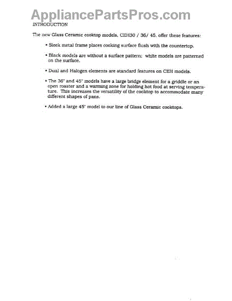 Parts for Thermador CEH365QW: 02 - Introduction Parts