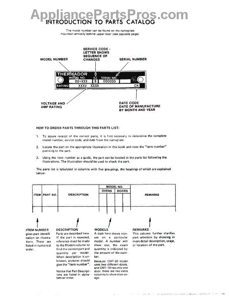 Parts for Thermador CMT-18: 02 - Introduction Parts