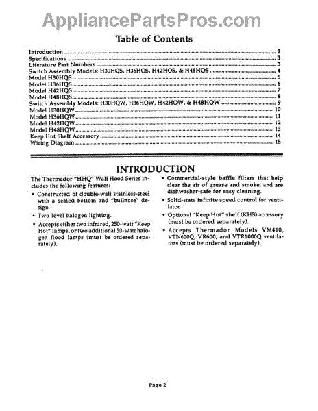 Parts for Thermador H48HQS: 02 - Introduction Parts