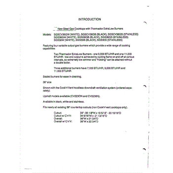 Parts for Thermador SGS36GW: 02 - Introduction Parts