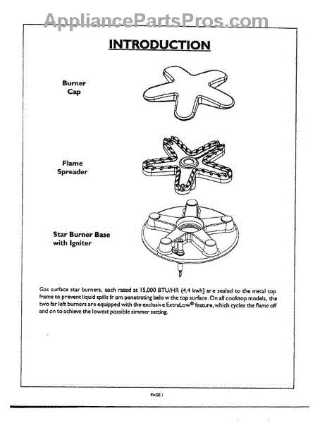 Parts for Thermador STAR BURNER: 02 - Introduction Parts