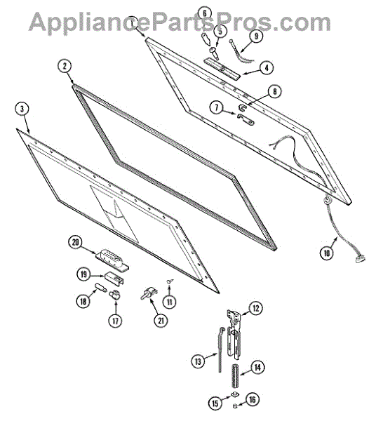 This factory screw secures appliance components to their mounting points. Replace missing, worn, or stripped hardware to restore a tight fit, proper alignment, and quieter operation across the affected assembly.