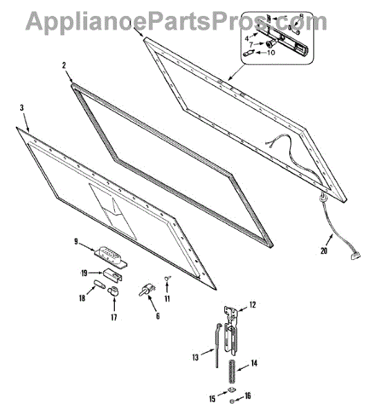 This door gasket creates a tight seal between the door and the appliance cabinet. Replacing a worn seal helps stop leaks and drafts, improves efficiency, and restores proper door closure and internal performance.