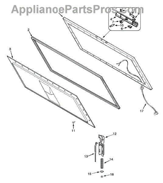 This factory screw secures appliance components to their mounting points. Replace missing, worn, or stripped hardware to restore a tight fit, proper alignment, and quieter operation across the affected assembly.