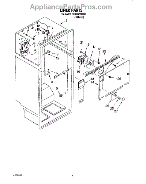 Parts for Whirlpool 3XKVN510000: 02 - Liner Parts