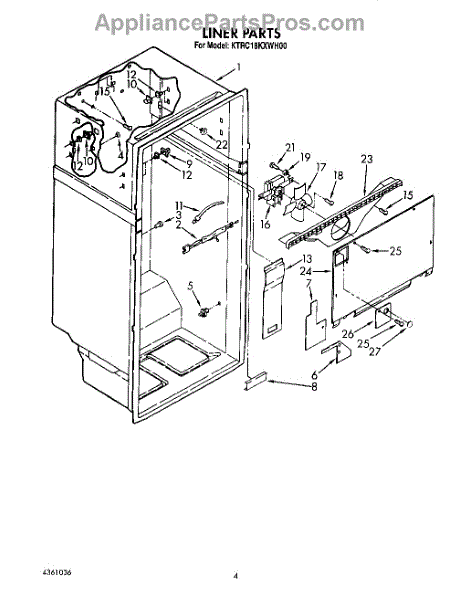 Parts for Kitchenaid KTRC18KXWH00: 02 - Liner Parts