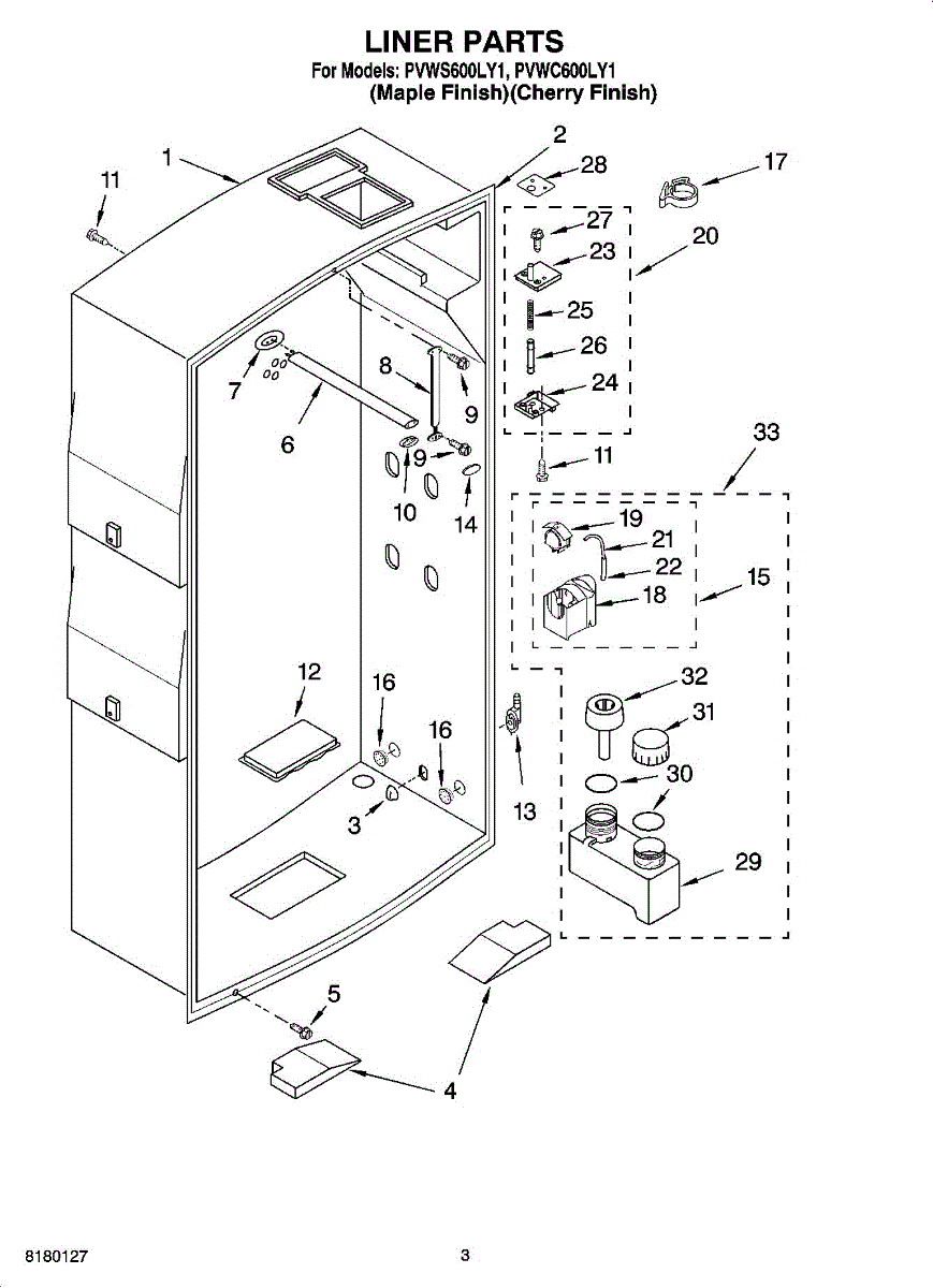 Parts for Whirlpool PVWC600LY1: 02 - Liner Parts