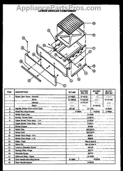 Parts for Amana RLT-370: 02 - Lower Broiler Component Parts