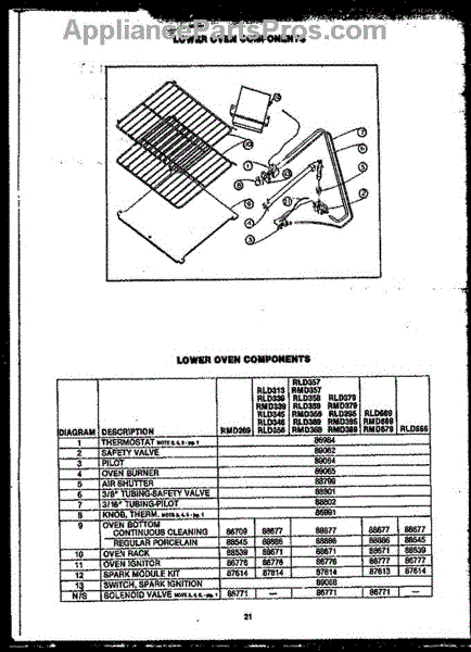Parts for Amana RLD669: 02 - Lower Oven Components Parts