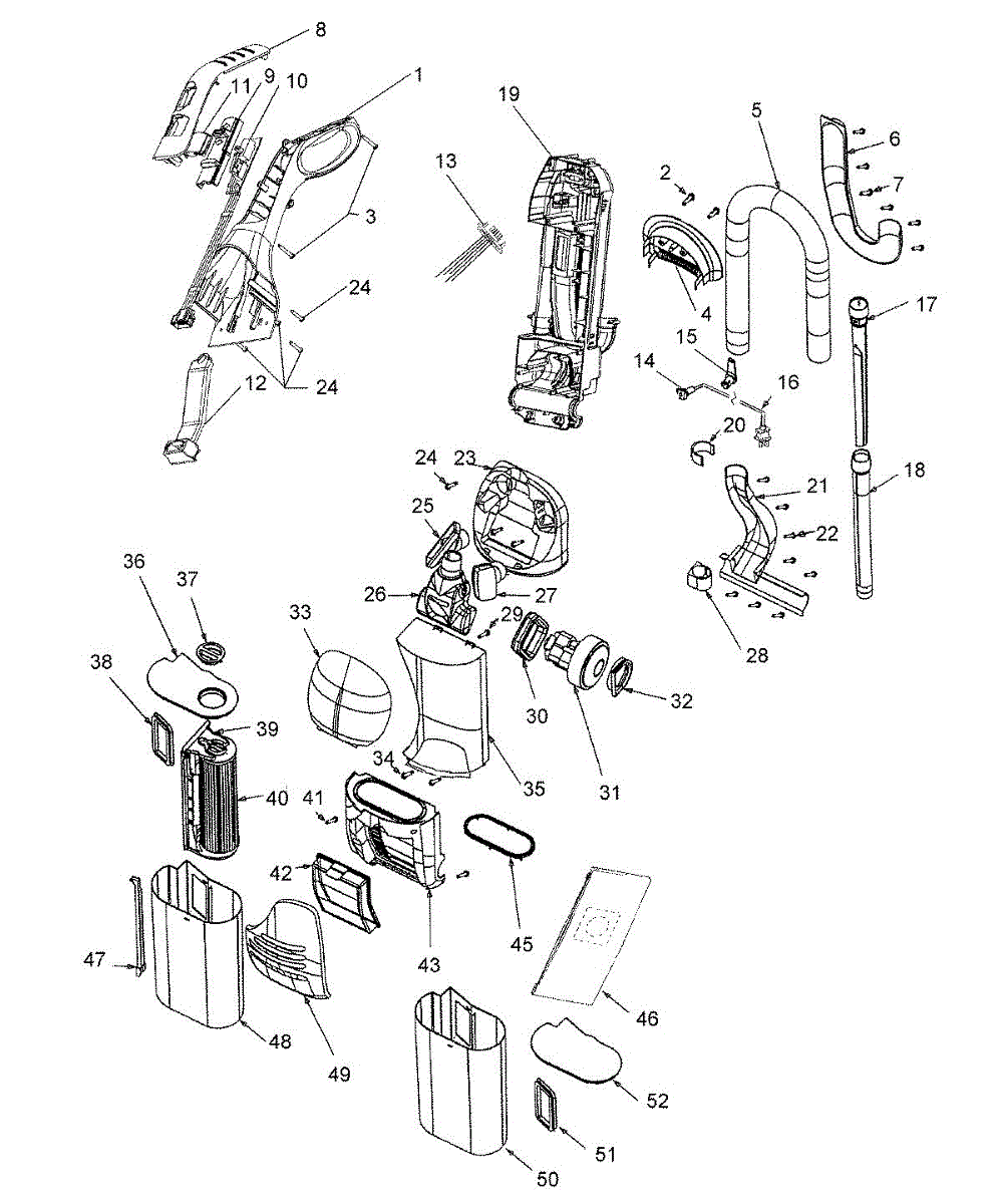 Parts for Hoover U8161900: 02 - Main Assembly Parts
