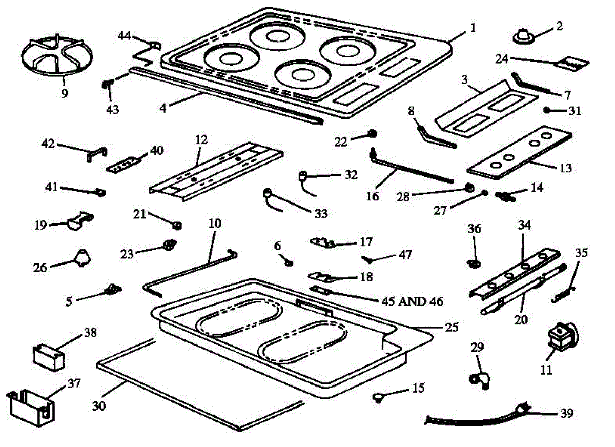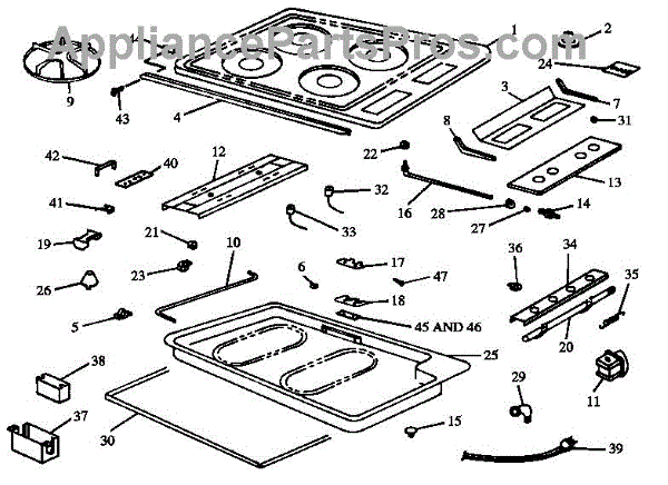 For top surface burners. Configuration: 2 + 0.