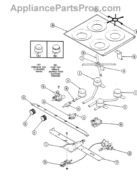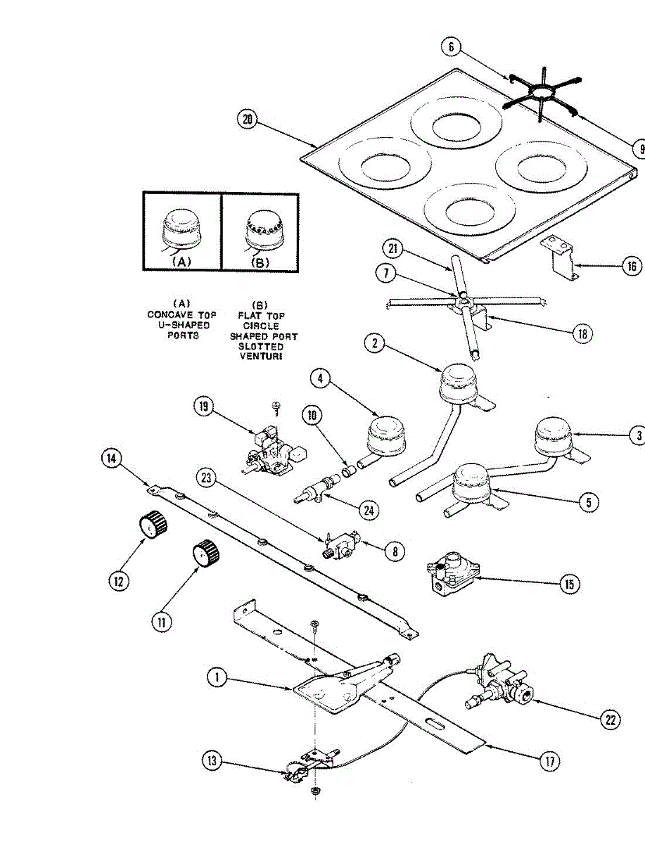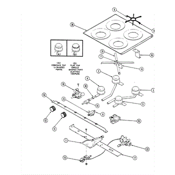 Parts for Magic Chef BT18NN-4TZ: 02 - Main Top & Burner Assembly Parts