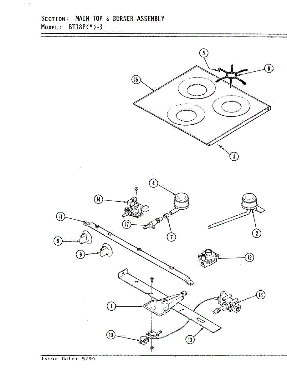 Parts for Magic Chef BT18PS-3: 02 - Main Top & Burner Assembly Parts