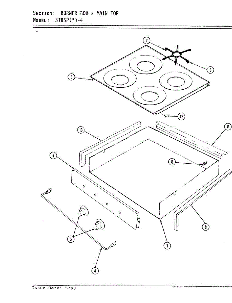 Parts for Magic Chef BT85PS-4T: 02 - Main Top & Burner Box Assy. Parts
