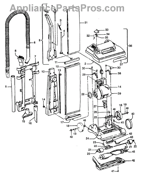Parts for Hoover C1411930: 02 - Mainbody, Handle, Outerbag Parts