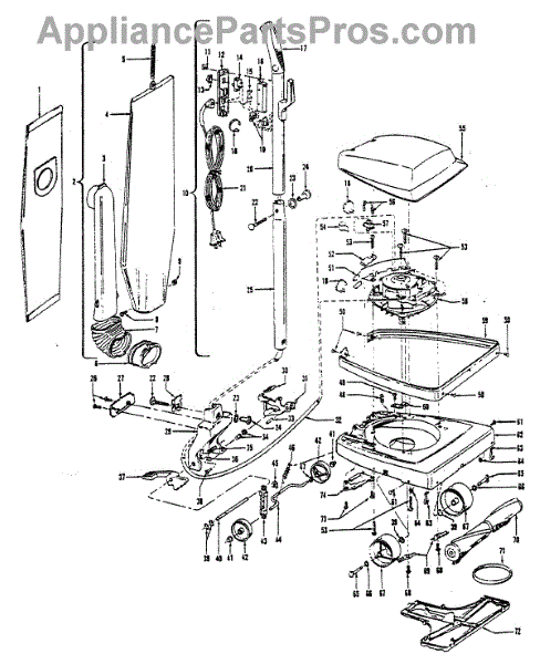 Parts for Hoover U4291021: 02 - Mainbody, Handle, Outerbag Parts