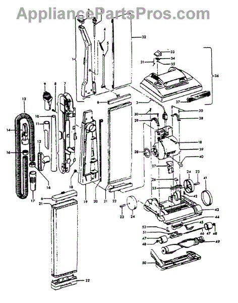 Parts for Hoover U4296930: 02 - Mainbody, Handle, Outerbag Parts