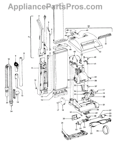 Parts for Hoover U4545900: 02 - Mainbody, Handle, Outerbag Parts