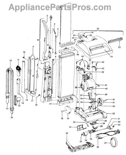 Parts for Hoover U4557910: 02 - Mainbody, Handle, Outerbag Parts